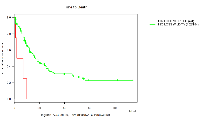 Table S2. Gene #27: '18q loss' versus Clinical Feature #1: 'Time to Death'