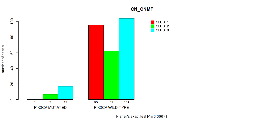 PIK3CA mutation correlated to 'CN_CNMF', 'METHLYATION_CNMF', and 'MRNASEQ_CHIERARCHICAL'.
