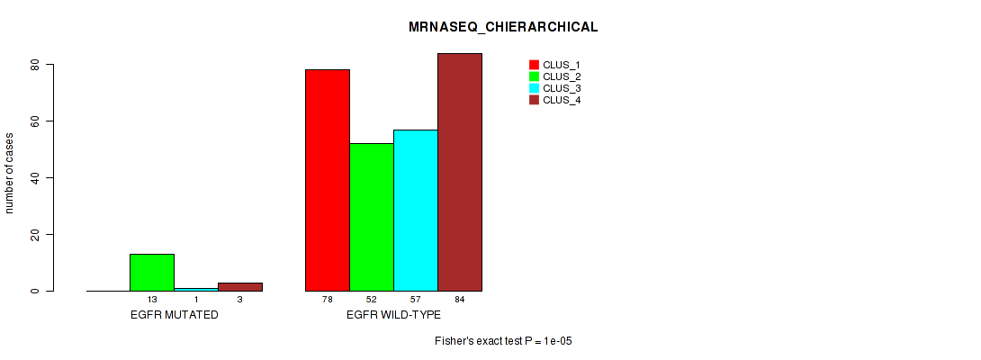 EGFR mutation correlated to 'CN_CNMF', 'METHLYATION_CNMF', 'MRNASEQ_CNMF', 'MRNASEQ_CHIERARCHICAL', 'MIRSEQ_CHIERARCHICAL', and 'MIRSEQ_MATURE_CHIERARCHICAL'.