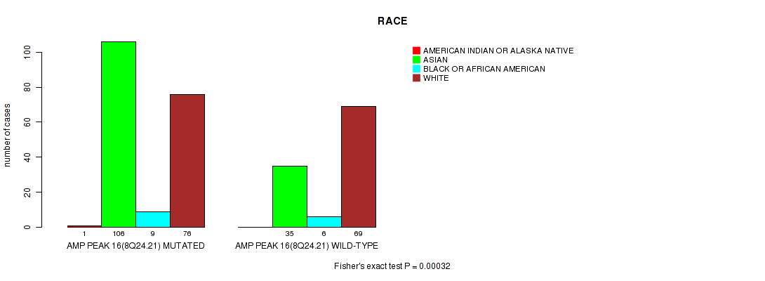 Table S4. Gene #16: 'amp_8q24.21' versus Clinical Feature #10: 'RACE'
