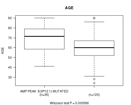 Table S1. Gene #5: 'amp_3p12.1' versus Clinical Feature #2: 'AGE'