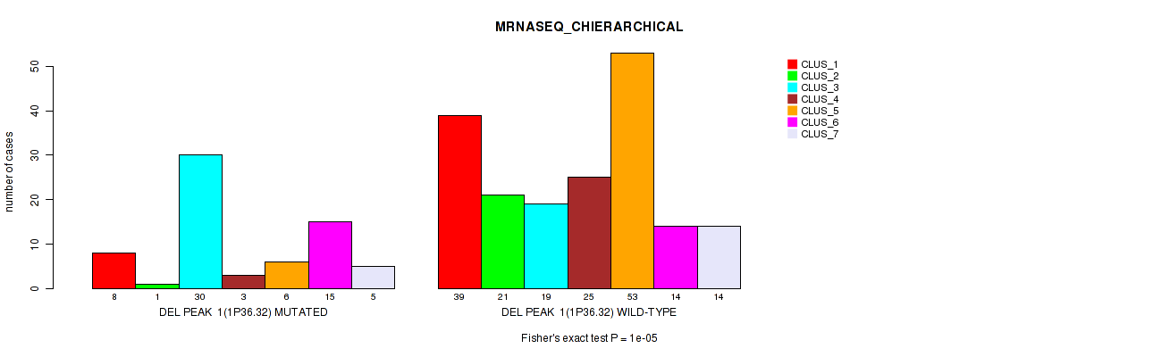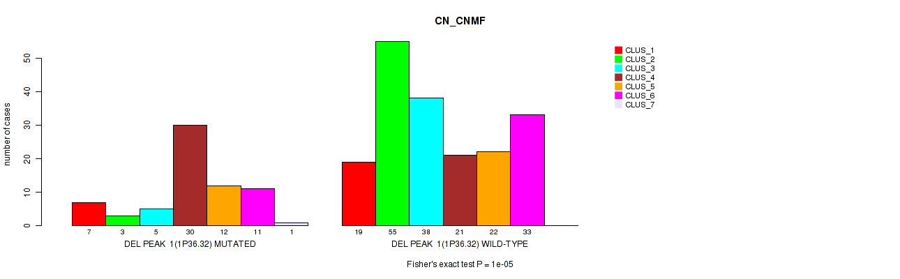 del_1p36.32 cnv correlated to 'CN_CNMF', 'METHLYATION_CNMF', 'MRNASEQ_CNMF', 'MRNASEQ_CHIERARCHICAL', 'MIRSEQ_CNMF', 'MIRSEQ_CHIERARCHICAL', 'MIRSEQ_MATURE_CNMF', and 'MIRSEQ_MATURE_CHIERARCHICAL'.