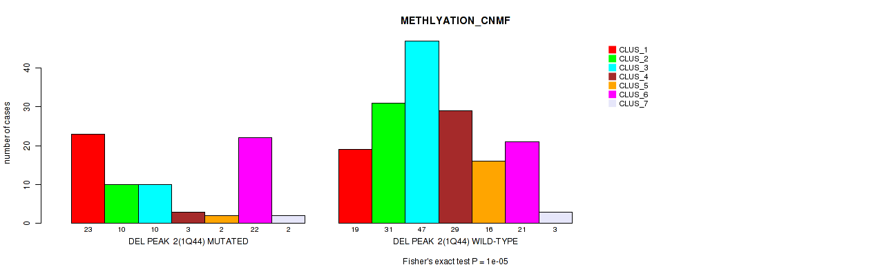 del_1q44 cnv correlated to 'CN_CNMF', 'METHLYATION_CNMF', 'MRNASEQ_CNMF', and 'MRNASEQ_CHIERARCHICAL'.