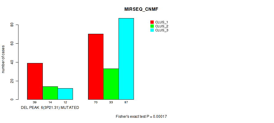 del_3p21.31 cnv correlated to 'METHLYATION_CNMF', 'MRNASEQ_CNMF', 'MRNASEQ_CHIERARCHICAL', 'MIRSEQ_CNMF', and 'MIRSEQ_MATURE_CHIERARCHICAL'.