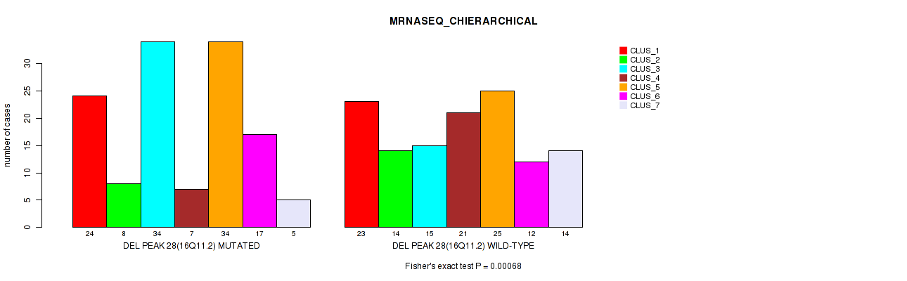 del_16q11.2 cnv correlated to 'CN_CNMF', 'METHLYATION_CNMF', 'MRNASEQ_CNMF', 'MRNASEQ_CHIERARCHICAL', 'MIRSEQ_CHIERARCHICAL', 'MIRSEQ_MATURE_CNMF', and 'MIRSEQ_MATURE_CHIERARCHICAL'.