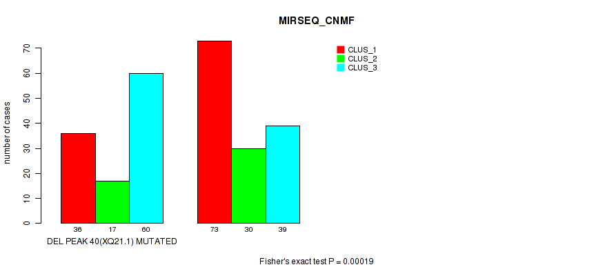 Figure S171. Get High-res Image Gene #65: 'del_xq21.1' versus Molecular Subtype #5: 'MIRSEQ_CNMF'