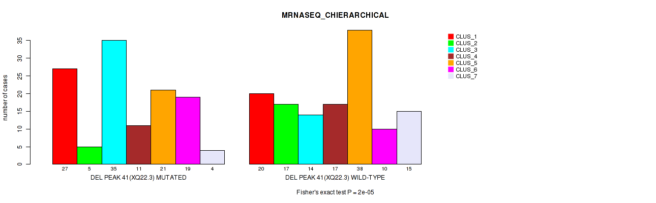 del_xq22.3 cnv correlated to 'CN_CNMF', 'METHLYATION_CNMF', 'MRNASEQ_CNMF', 'MRNASEQ_CHIERARCHICAL', 'MIRSEQ_CNMF', and 'MIRSEQ_CHIERARCHICAL'.