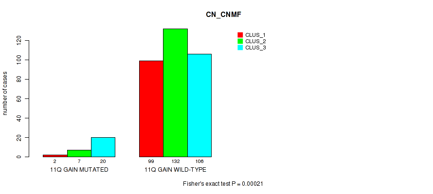 Table S10. Gene #22: '11q gain' versus Molecular Subtype #1: 'CN_CNMF'