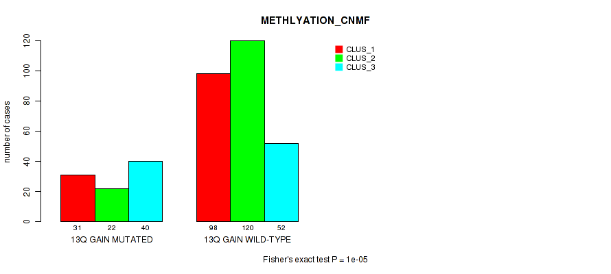 13q gain cnv correlated to 'CN_CNMF' and 'METHLYATION_CNMF'.
