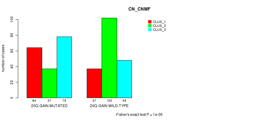 Table S19. Gene #37: '20q gain' versus Molecular Subtype #1: 'CN_CNMF'