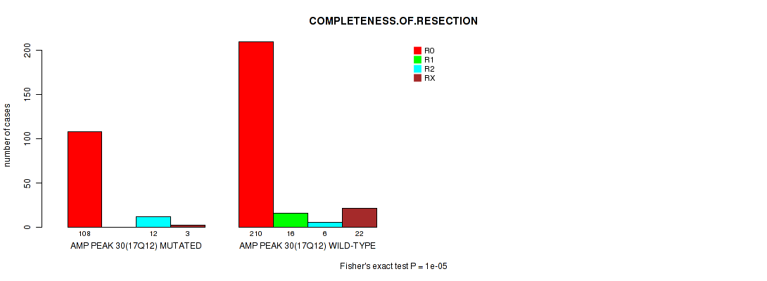 Figure S3. Get High-res Image Gene #30: 'amp_17q12' versus Clinical Feature #10: 'COMPLETENESS.OF.RESECTION'