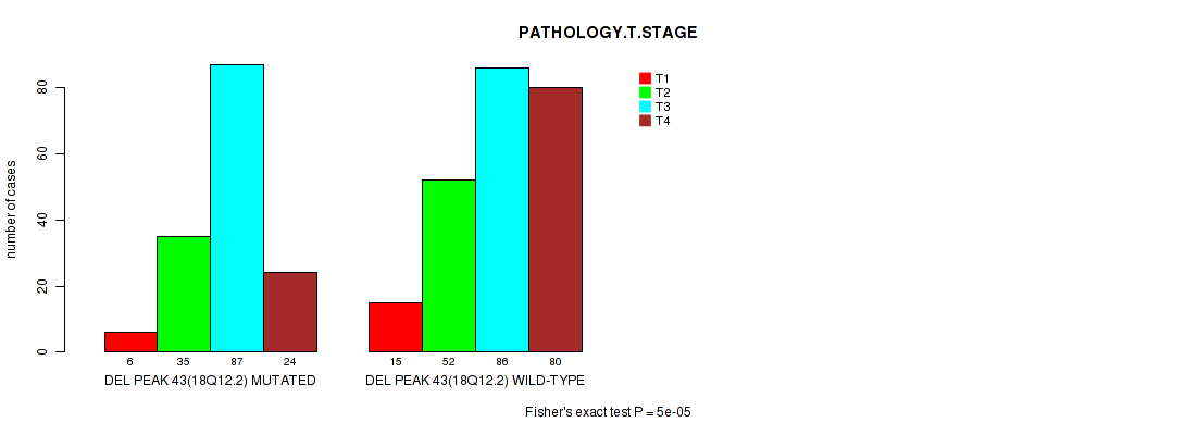 del_18q12.2 cnv correlated to 'PATHOLOGY.T.STAGE'.