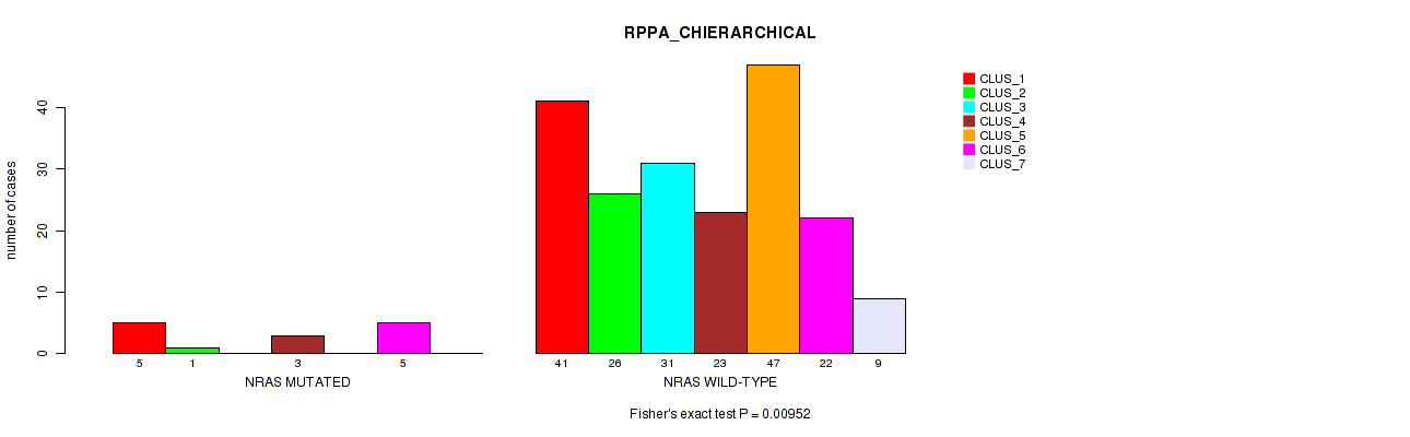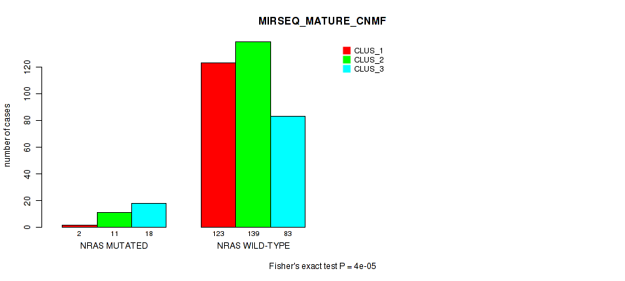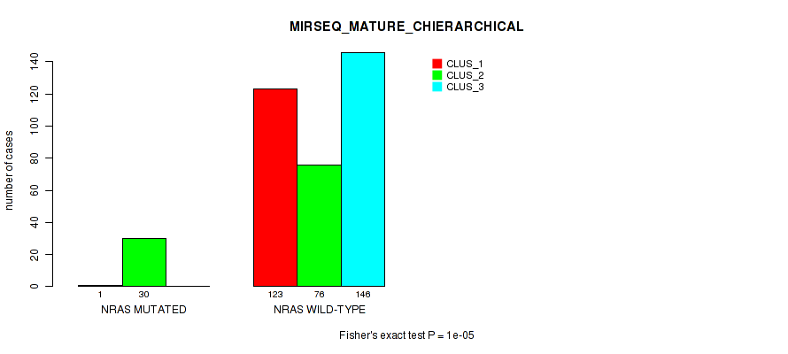 NRAS mutation correlated to 'METHLYATION_CNMF', 'MRNASEQ_CNMF', 'MRNASEQ_CHIERARCHICAL', 'MIRSEQ_CNMF', 'MIRSEQ_CHIERARCHICAL', 'MIRSEQ_MATURE_CNMF', and 'MIRSEQ_MATURE_CHIERARCHICAL'.