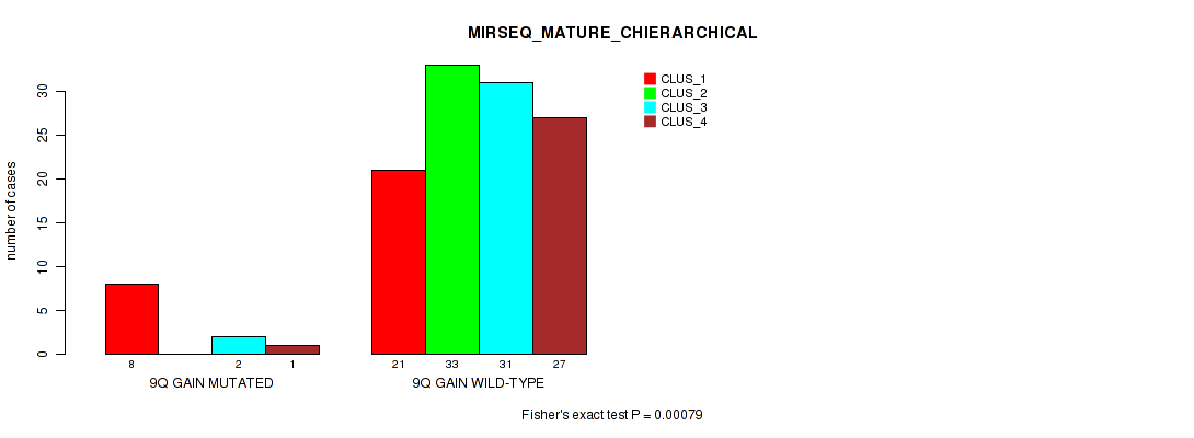 9q gain cnv correlated to 'CN_CNMF', 'METHLYATION_CNMF', 'MRNASEQ_CNMF', 'MRNASEQ_CHIERARCHICAL', and 'MIRSEQ_MATURE_CHIERARCHICAL'.