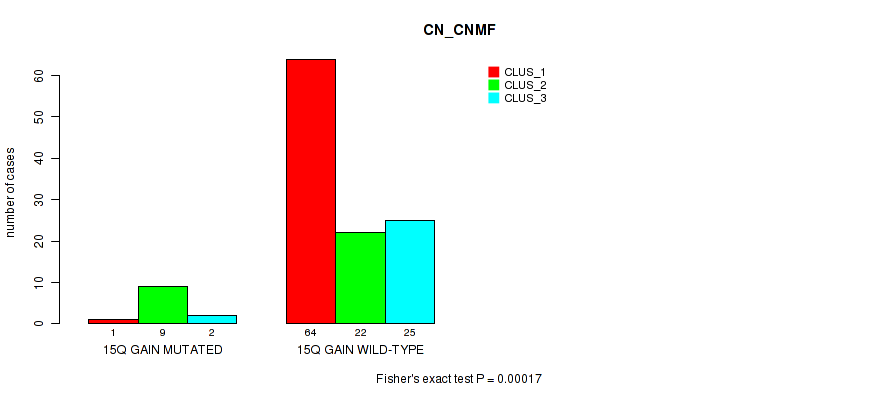 15q gain cnv correlated to 'CN_CNMF' and 'METHLYATION_CNMF'.