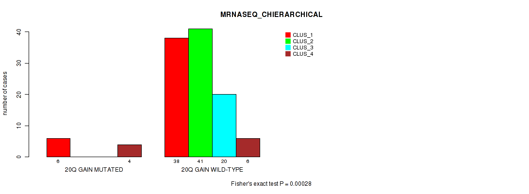20q gain cnv correlated to 'CN_CNMF', 'MRNASEQ_CHIERARCHICAL', and 'MIRSEQ_MATURE_CNMF'.