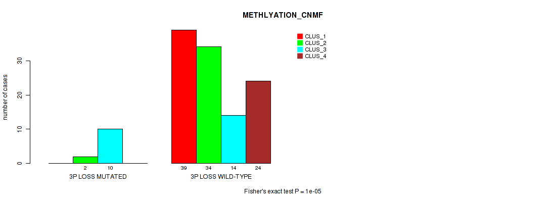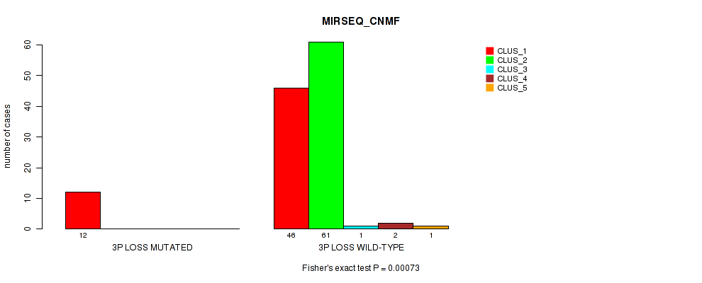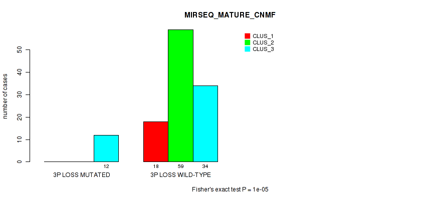 3p loss cnv correlated to 'CN_CNMF', 'METHLYATION_CNMF', 'MRNASEQ_CNMF', 'MRNASEQ_CHIERARCHICAL', 'MIRSEQ_CNMF', 'MIRSEQ_MATURE_CNMF', and 'MIRSEQ_MATURE_CHIERARCHICAL'.