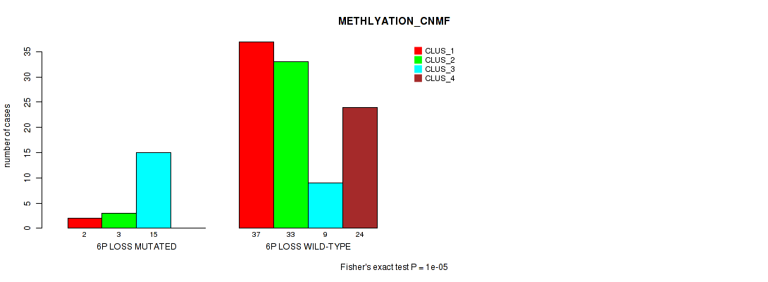 6p loss cnv correlated to 'CN_CNMF', 'METHLYATION_CNMF', 'MRNASEQ_CNMF', 'MRNASEQ_CHIERARCHICAL', 'MIRSEQ_CNMF', 'MIRSEQ_CHIERARCHICAL', 'MIRSEQ_MATURE_CNMF', and 'MIRSEQ_MATURE_CHIERARCHICAL'.