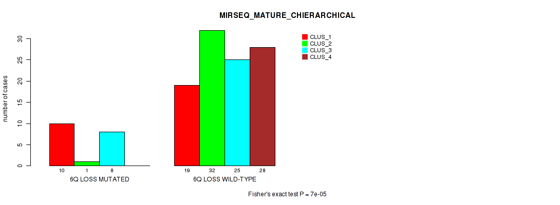 Table S94. Gene #32: '6q loss' versus Molecular Subtype #8: 'MIRSEQ_MATURE_CHIERARCHICAL'