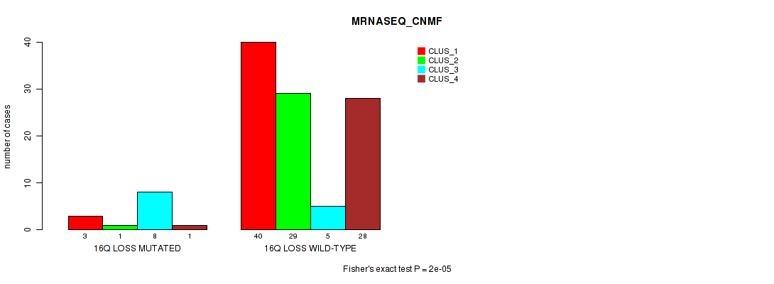 Table S103. Gene #41: '16q loss' versus Molecular Subtype #3: 'MRNASEQ_CNMF'