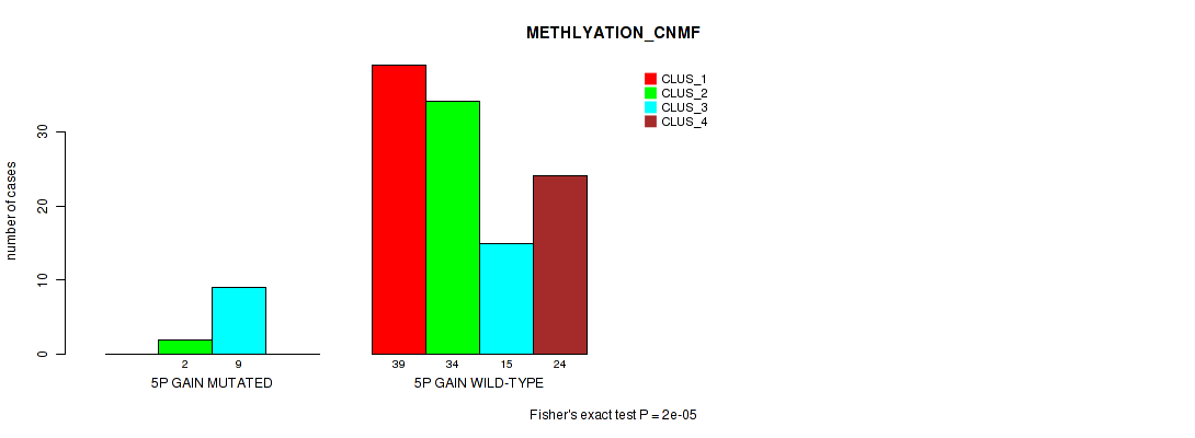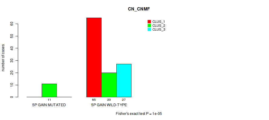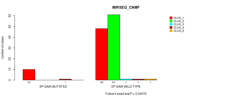 5p gain cnv correlated to 'CN_CNMF', 'METHLYATION_CNMF', 'MIRSEQ_CNMF', and 'MIRSEQ_MATURE_CNMF'.