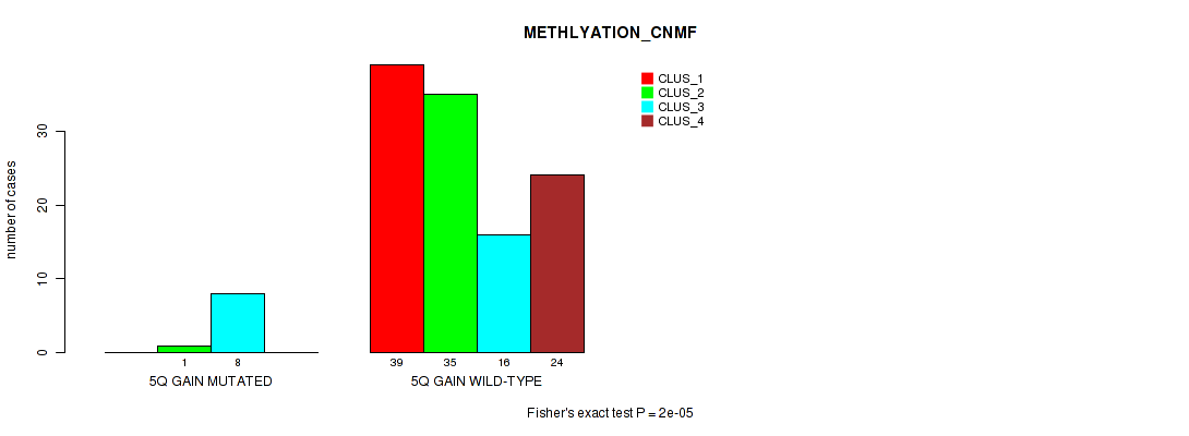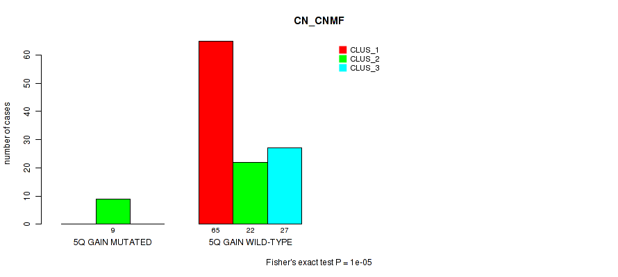 5q gain cnv correlated to 'CN_CNMF', 'METHLYATION_CNMF', and 'MIRSEQ_MATURE_CNMF'.