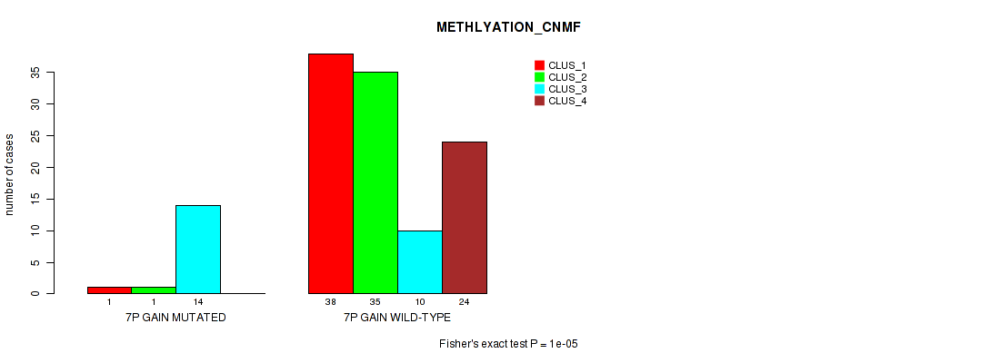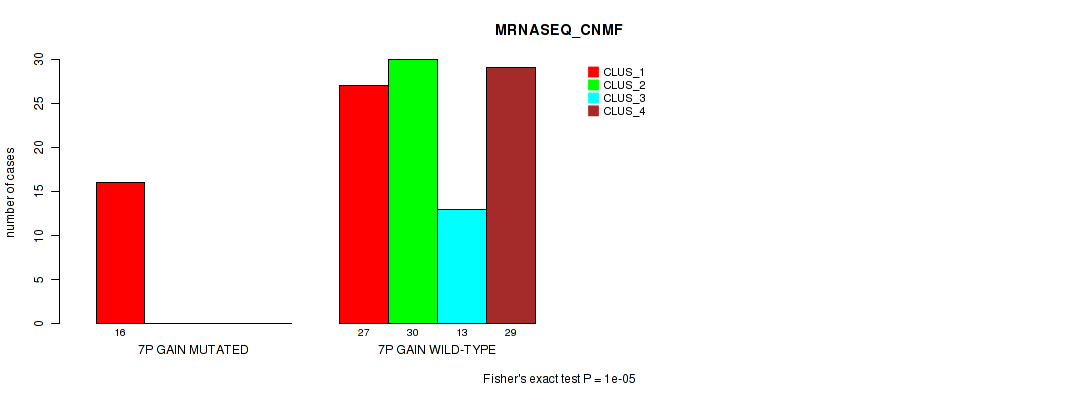 7p gain cnv correlated to 'CN_CNMF', 'METHLYATION_CNMF', 'MRNASEQ_CNMF', 'MRNASEQ_CHIERARCHICAL', 'MIRSEQ_CNMF', 'MIRSEQ_CHIERARCHICAL', 'MIRSEQ_MATURE_CNMF', and 'MIRSEQ_MATURE_CHIERARCHICAL'.