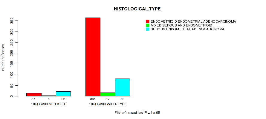18q gain cnv correlated to 'HISTOLOGICAL.TYPE'.