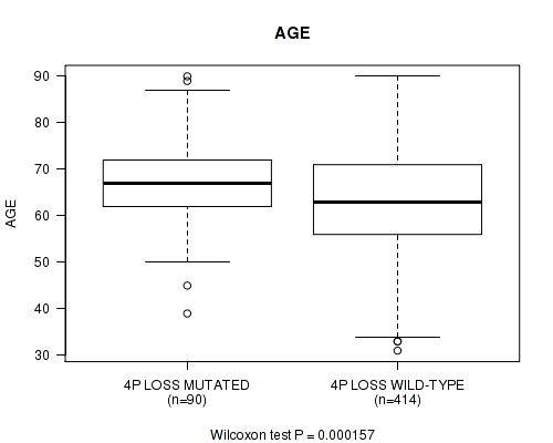 4p loss cnv correlated to 'AGE' and 'HISTOLOGICAL.TYPE'.
