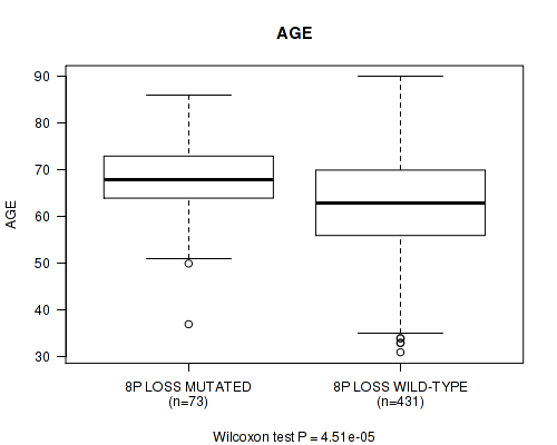 8p loss cnv correlated to 'AGE' and 'HISTOLOGICAL.TYPE'.