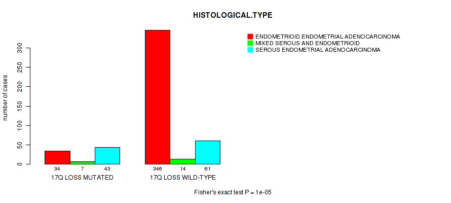 Figure S66. Get High-res Image Gene #71: '17q loss' versus Clinical Feature #3: 'HISTOLOGICAL.TYPE'