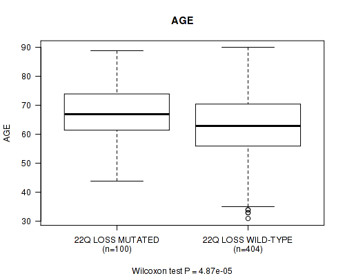 Figure S74. Get High-res Image Gene #79: '22q loss' versus Clinical Feature #2: 'AGE'