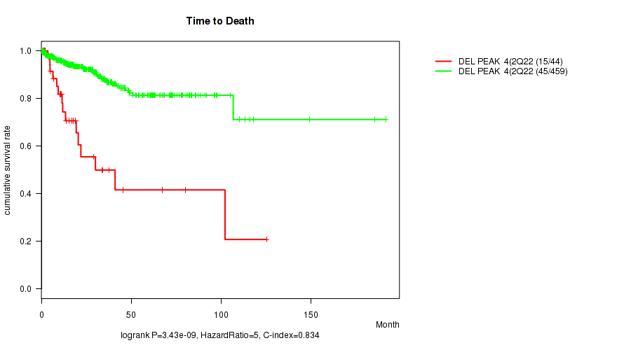 del_2q22.1 cnv correlated to 'Time to Death' and 'HISTOLOGICAL.TYPE'.