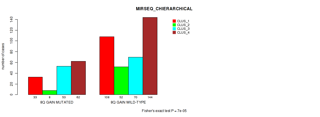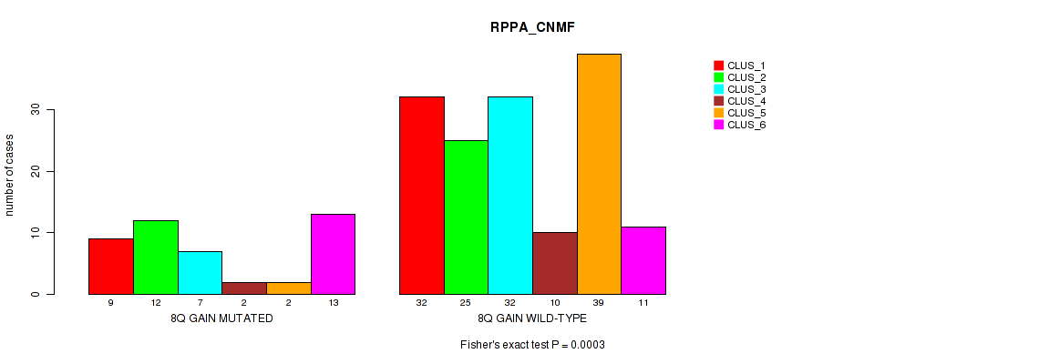 8q gain cnv correlated to 'CN_CNMF', 'RPPA_CNMF', 'MRNASEQ_CNMF', 'MIRSEQ_CNMF', and 'MIRSEQ_CHIERARCHICAL'.