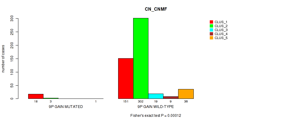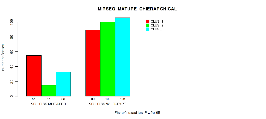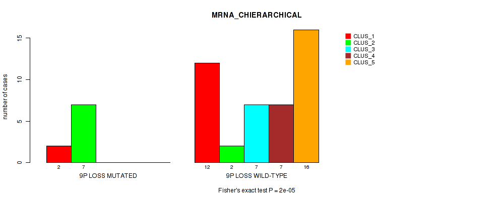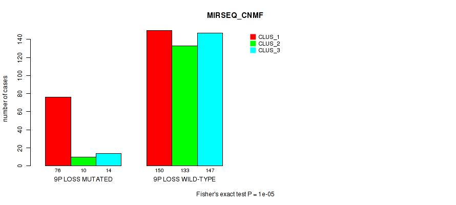 9p loss cnv correlated to 'MRNA_CHIERARCHICAL', 'CN_CNMF', 'METHLYATION_CNMF', 'MRNASEQ_CNMF', 'MRNASEQ_CHIERARCHICAL', 'MIRSEQ_CNMF', and 'MIRSEQ_CHIERARCHICAL'.