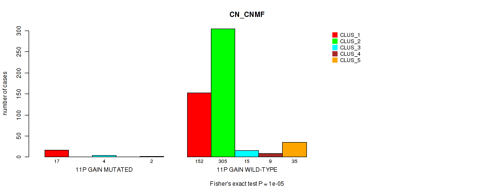 5p gain cnv correlated to 'CN_CNMF', 'METHLYATION_CNMF', 'MRNASEQ_CNMF', 'MRNASEQ_CHIERARCHICAL', 'MIRSEQ_CNMF', 'MIRSEQ_CHIERARCHICAL', 'MIRSEQ_MATURE_CNMF', and 'MIRSEQ_MATURE_CHIERARCHICAL'.