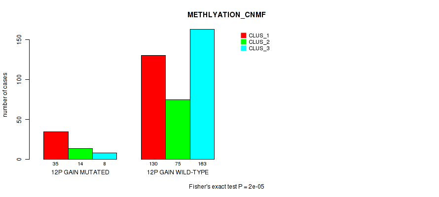 12p gain cnv correlated to 'CN_CNMF', 'METHLYATION_CNMF', 'MRNASEQ_CNMF', 'MRNASEQ_CHIERARCHICAL', 'MIRSEQ_CNMF', and 'MIRSEQ_CHIERARCHICAL'.