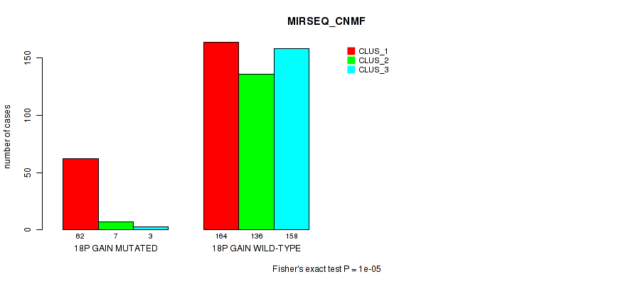 18p gain cnv correlated to 'CN_CNMF', 'METHLYATION_CNMF', 'MRNASEQ_CNMF', 'MRNASEQ_CHIERARCHICAL', 'MIRSEQ_CNMF', 'MIRSEQ_CHIERARCHICAL', 'MIRSEQ_MATURE_CNMF', and 'MIRSEQ_MATURE_CHIERARCHICAL'.