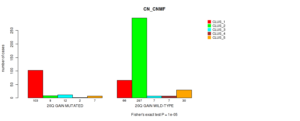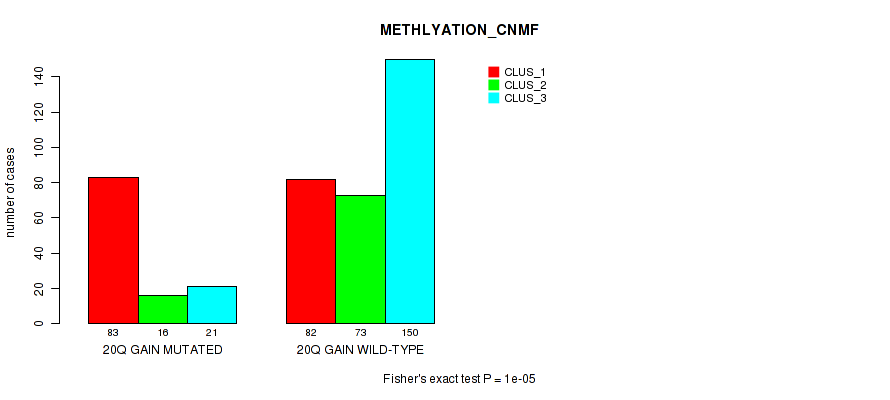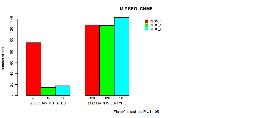 20q gain cnv correlated to 'CN_CNMF', 'METHLYATION_CNMF', 'MRNASEQ_CNMF', 'MRNASEQ_CHIERARCHICAL', 'MIRSEQ_CNMF', 'MIRSEQ_CHIERARCHICAL', 'MIRSEQ_MATURE_CNMF', and 'MIRSEQ_MATURE_CHIERARCHICAL'.
