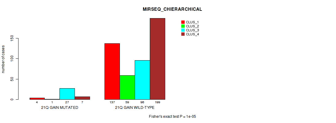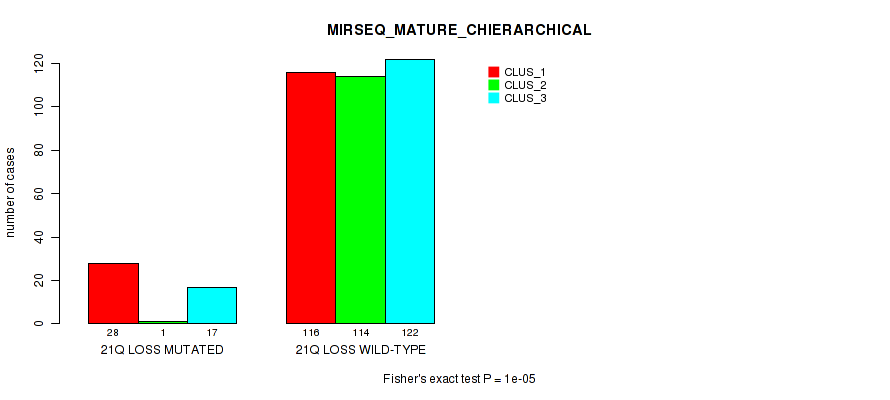 Table S398. Gene #78: '21q loss' versus Molecular Subtype #10: 'MIRSEQ_CHIERARCHICAL'