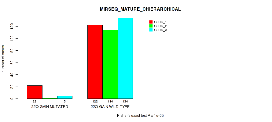 Figure S406. Get High-res Image Gene #79: '22q loss' versus Molecular Subtype #12: 'MIRSEQ_MATURE_CHIERARCHICAL'