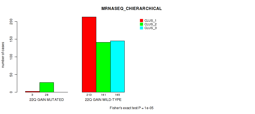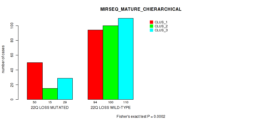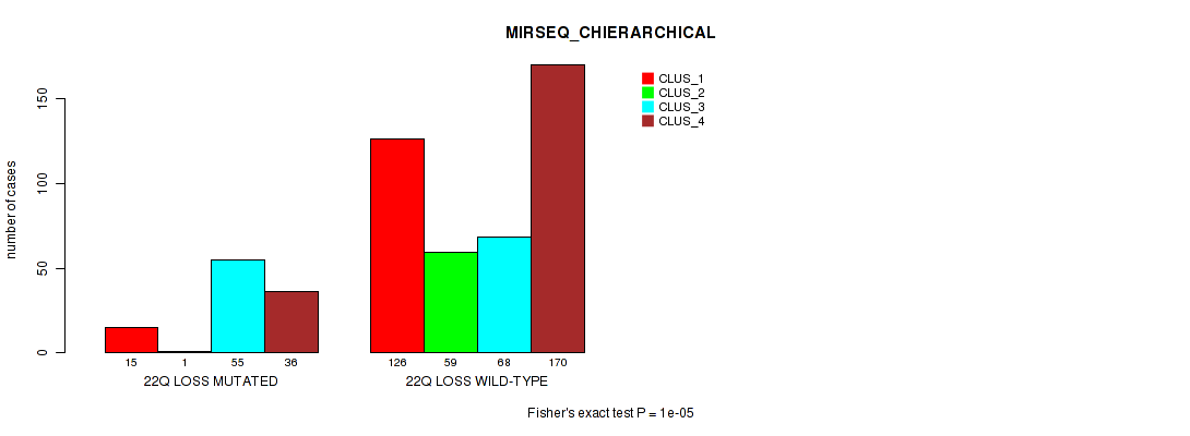 Figure S405. Get High-res Image Gene #79: '22q loss' versus Molecular Subtype #10: 'MIRSEQ_CHIERARCHICAL'