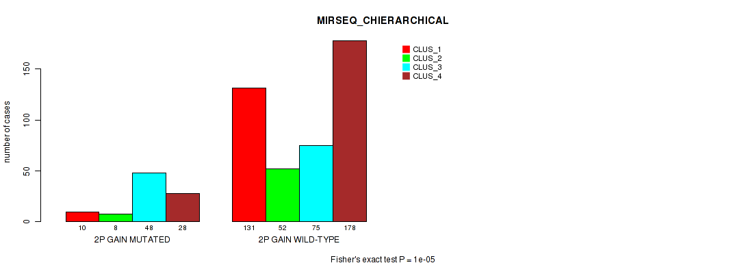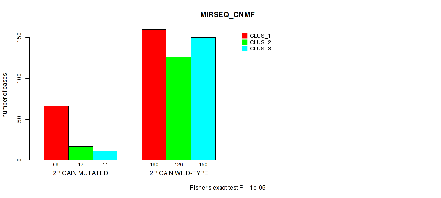 2p gain cnv correlated to 'CN_CNMF', 'METHLYATION_CNMF', 'MRNASEQ_CNMF', 'MRNASEQ_CHIERARCHICAL', 'MIRSEQ_CNMF', 'MIRSEQ_CHIERARCHICAL', 'MIRSEQ_MATURE_CNMF', and 'MIRSEQ_MATURE_CHIERARCHICAL'.
