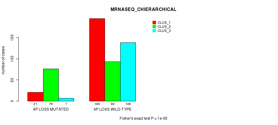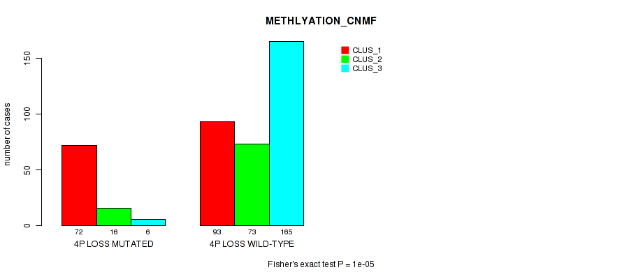 4p loss cnv correlated to 'CN_CNMF', 'METHLYATION_CNMF', 'MRNASEQ_CNMF', 'MRNASEQ_CHIERARCHICAL', 'MIRSEQ_CNMF', 'MIRSEQ_CHIERARCHICAL', 'MIRSEQ_MATURE_CNMF', and 'MIRSEQ_MATURE_CHIERARCHICAL'.