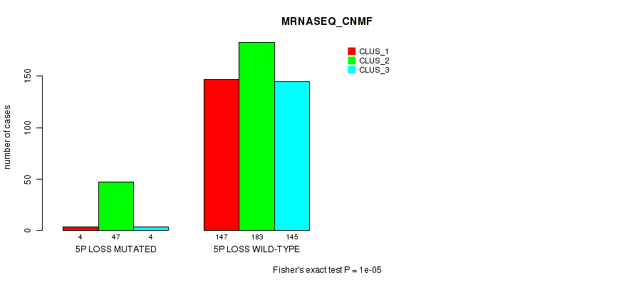 5p loss cnv correlated to 'CN_CNMF', 'METHLYATION_CNMF', 'MRNASEQ_CNMF', 'MRNASEQ_CHIERARCHICAL', 'MIRSEQ_CNMF', 'MIRSEQ_CHIERARCHICAL', and 'MIRSEQ_MATURE_CNMF'.