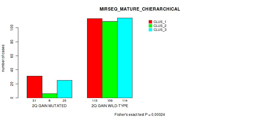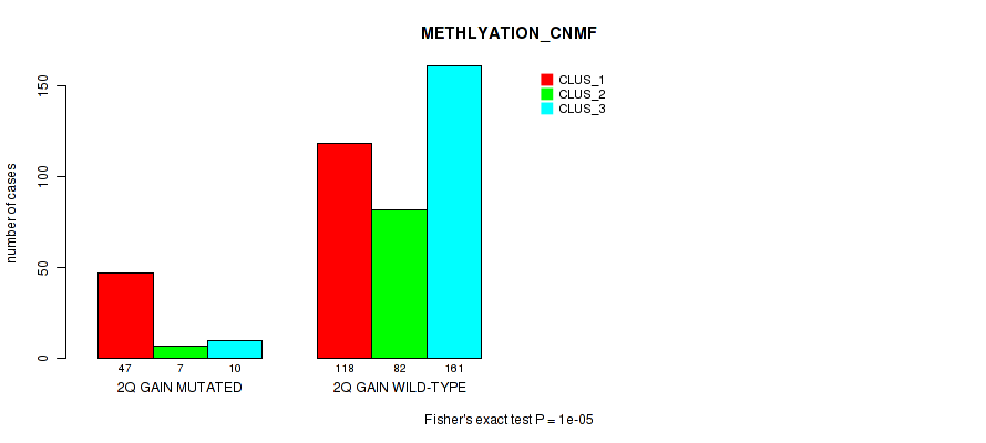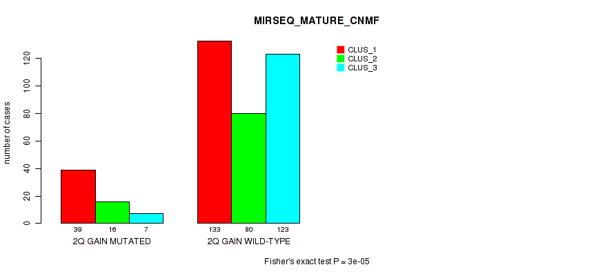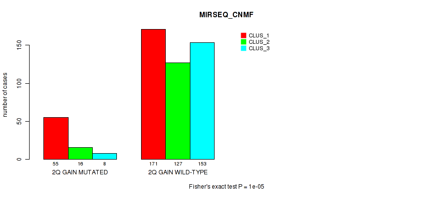 2q gain cnv correlated to 'CN_CNMF', 'METHLYATION_CNMF', 'MRNASEQ_CNMF', 'MRNASEQ_CHIERARCHICAL', 'MIRSEQ_CNMF', 'MIRSEQ_CHIERARCHICAL', 'MIRSEQ_MATURE_CNMF', and 'MIRSEQ_MATURE_CHIERARCHICAL'.