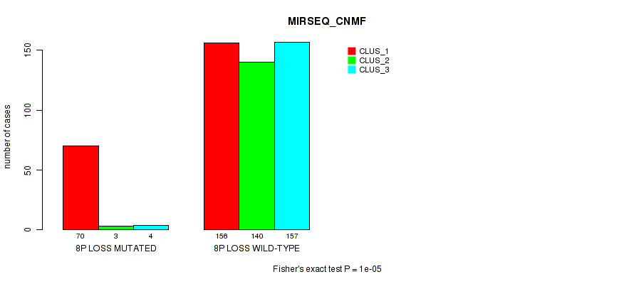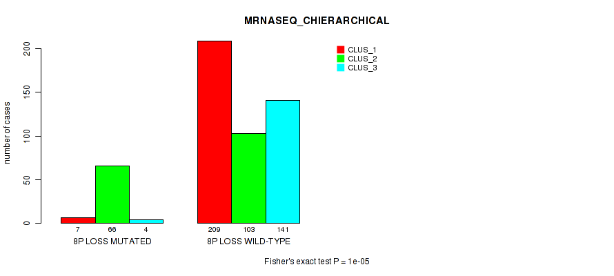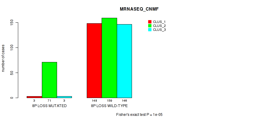 8p loss cnv correlated to 'MRNA_CHIERARCHICAL', 'CN_CNMF', 'METHLYATION_CNMF', 'MRNASEQ_CNMF', 'MRNASEQ_CHIERARCHICAL', 'MIRSEQ_CNMF', 'MIRSEQ_CHIERARCHICAL', 'MIRSEQ_MATURE_CNMF', and 'MIRSEQ_MATURE_CHIERARCHICAL'.