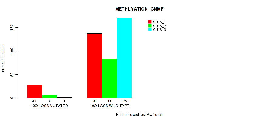 10q loss cnv correlated to 'CN_CNMF', 'METHLYATION_CNMF', 'MRNASEQ_CNMF', 'MRNASEQ_CHIERARCHICAL', 'MIRSEQ_CNMF', and 'MIRSEQ_CHIERARCHICAL'.