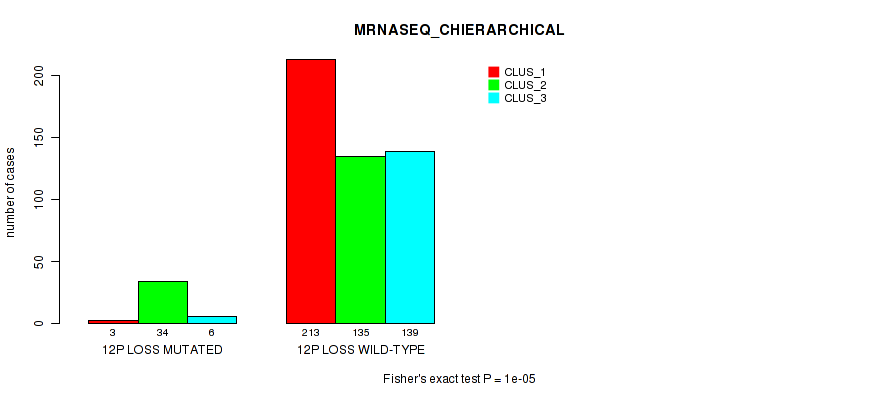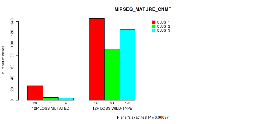 12p loss cnv correlated to 'CN_CNMF', 'METHLYATION_CNMF', 'MRNASEQ_CNMF', 'MRNASEQ_CHIERARCHICAL', 'MIRSEQ_CNMF', 'MIRSEQ_CHIERARCHICAL', and 'MIRSEQ_MATURE_CNMF'.