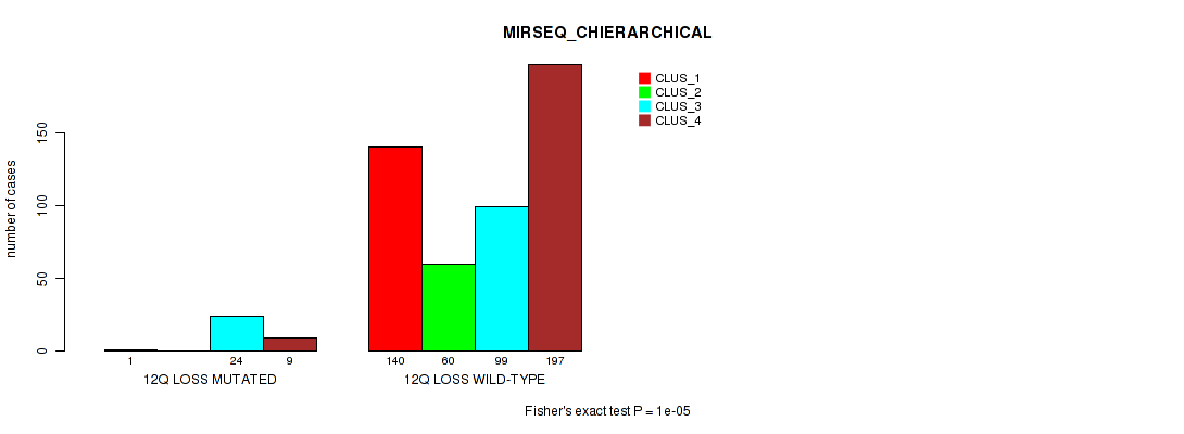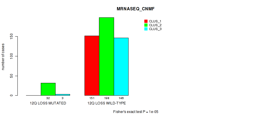 12q loss cnv correlated to 'CN_CNMF', 'METHLYATION_CNMF', 'MRNASEQ_CNMF', 'MRNASEQ_CHIERARCHICAL', 'MIRSEQ_CNMF', 'MIRSEQ_CHIERARCHICAL', 'MIRSEQ_MATURE_CNMF', and 'MIRSEQ_MATURE_CHIERARCHICAL'.